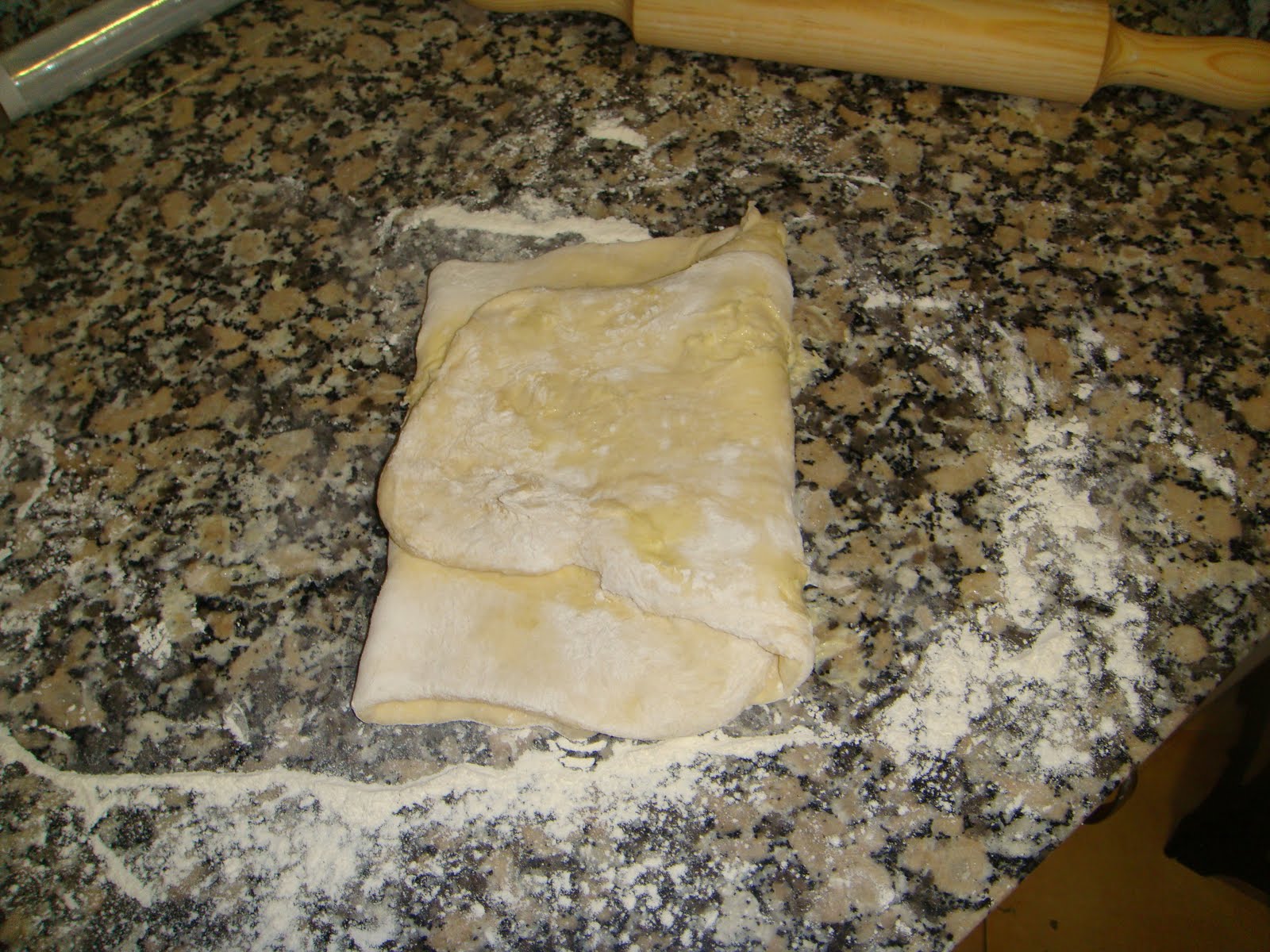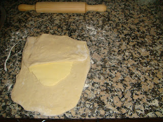 La imagen corresponde a la tercera vez que hacía pliegues y como podéis ver me he encontrado en este punto con el primer problema, la mantequilla se me escurría por todos los lados!!: